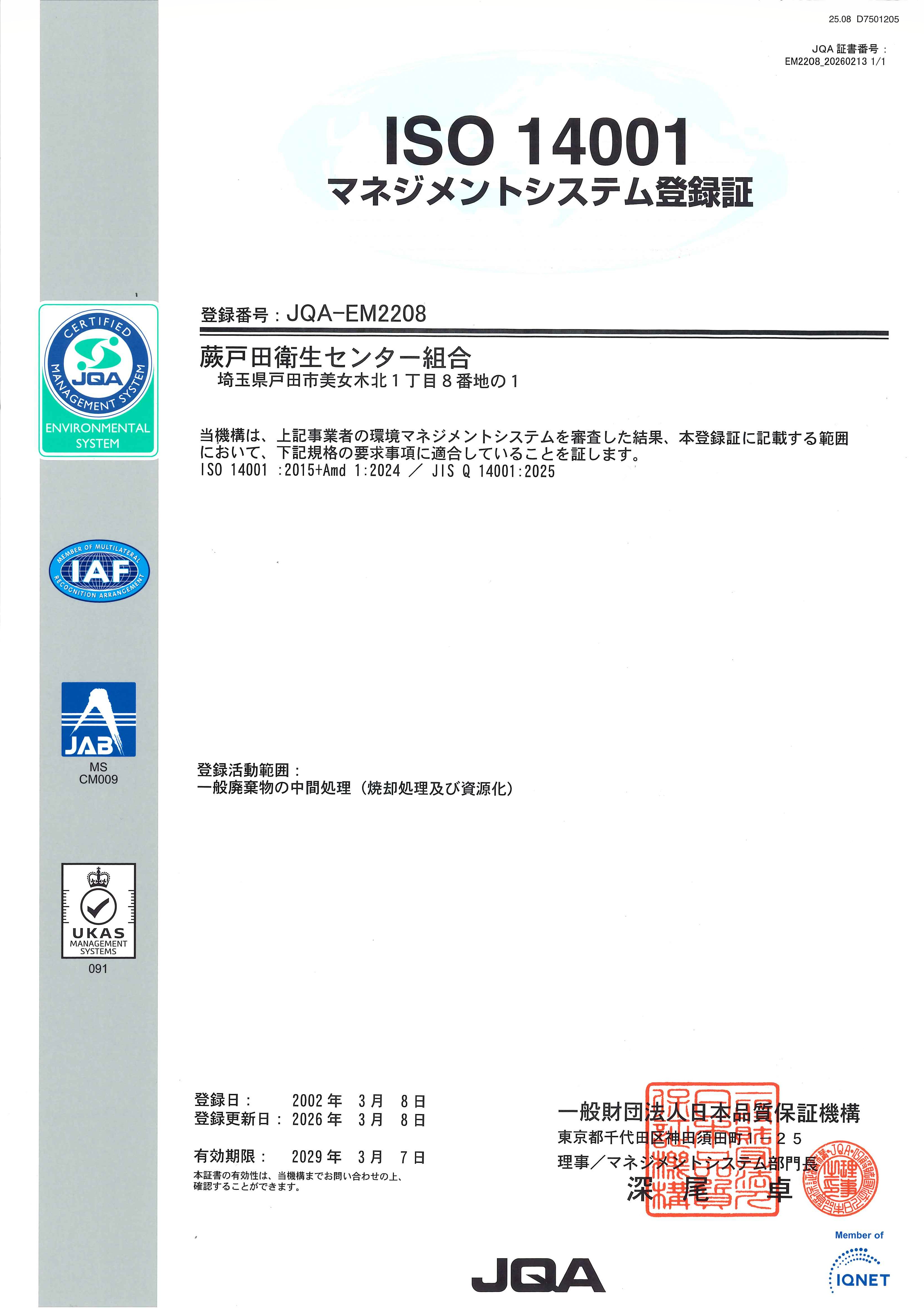 蕨戸田衛生センター組合は、一般廃棄物の中間処理施設として、地球環境及び地域環境に配慮した処理事業を行い環境保全に万全を期すとともに、循環型社会形成の取り組みを推進します。